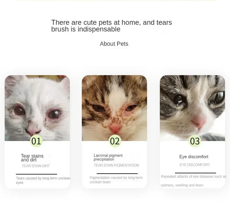 MULTIFUNCTIONAL & CONVENIENT】Proudly presents the Tear Stain Remover Brush, your pet's ultimate eye care companion. Similar in shape and size to a cosmetic brush, this multi-functional tool is perfect for the delicate cleaning of your pet's eyes. It has a wide range of applications for both dogs and cats. The brush can also be used for eye grooming products, ensuring complete care for your beloved pet.