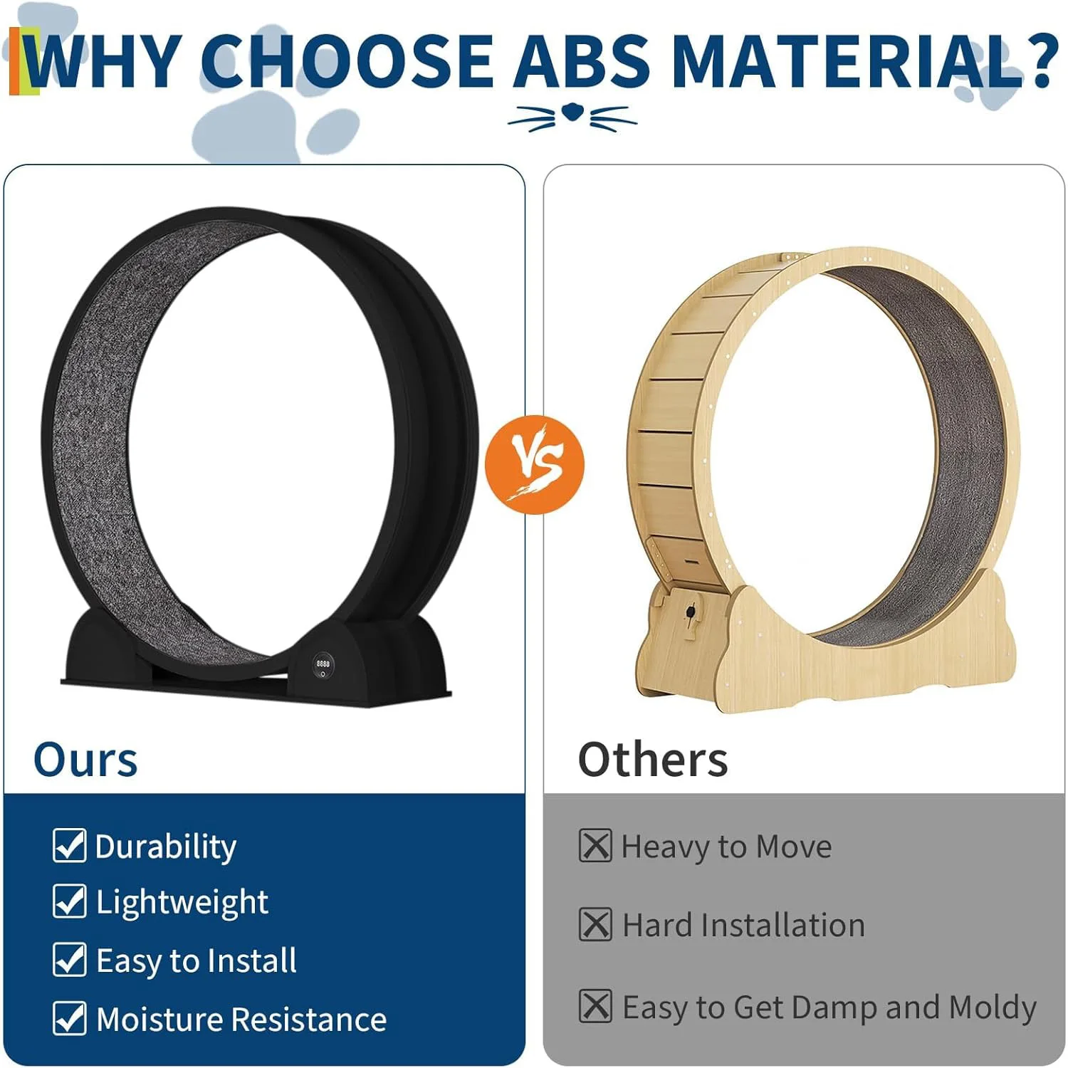🐈Large Diameter: Our cat running wheel has an inner diameter of 40.5 inches/39.37 inches, large enough to accommodate cats weighing up to 25 pounds. Unlike smaller wheels, your cat will have ample room to stretch out while running without causing spinal damage.