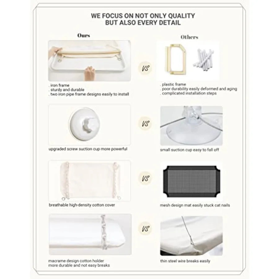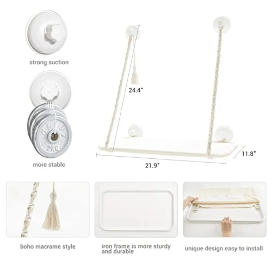 Cat Window Perch Macrame Boho Cat Hammock Wall Mounted Cat Bed for Indoor Cat Pet Resting Seat Safety Space Saving Cat Shelves