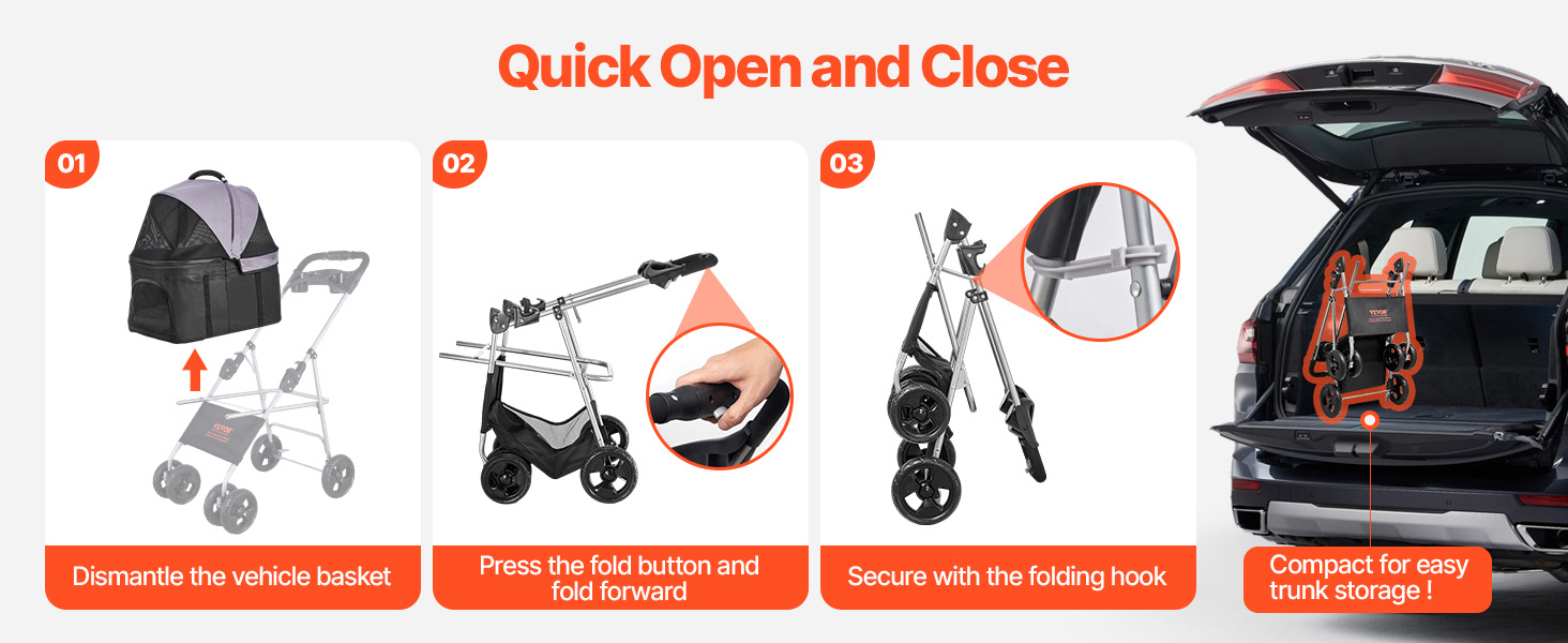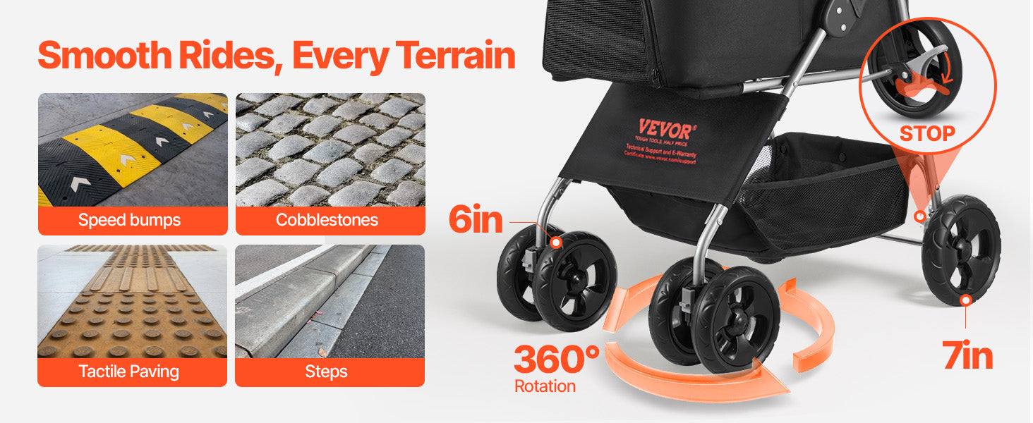 - Ergonomic Grip for Enhanced Comfort: Effortless maneuverability for your pet stroller.