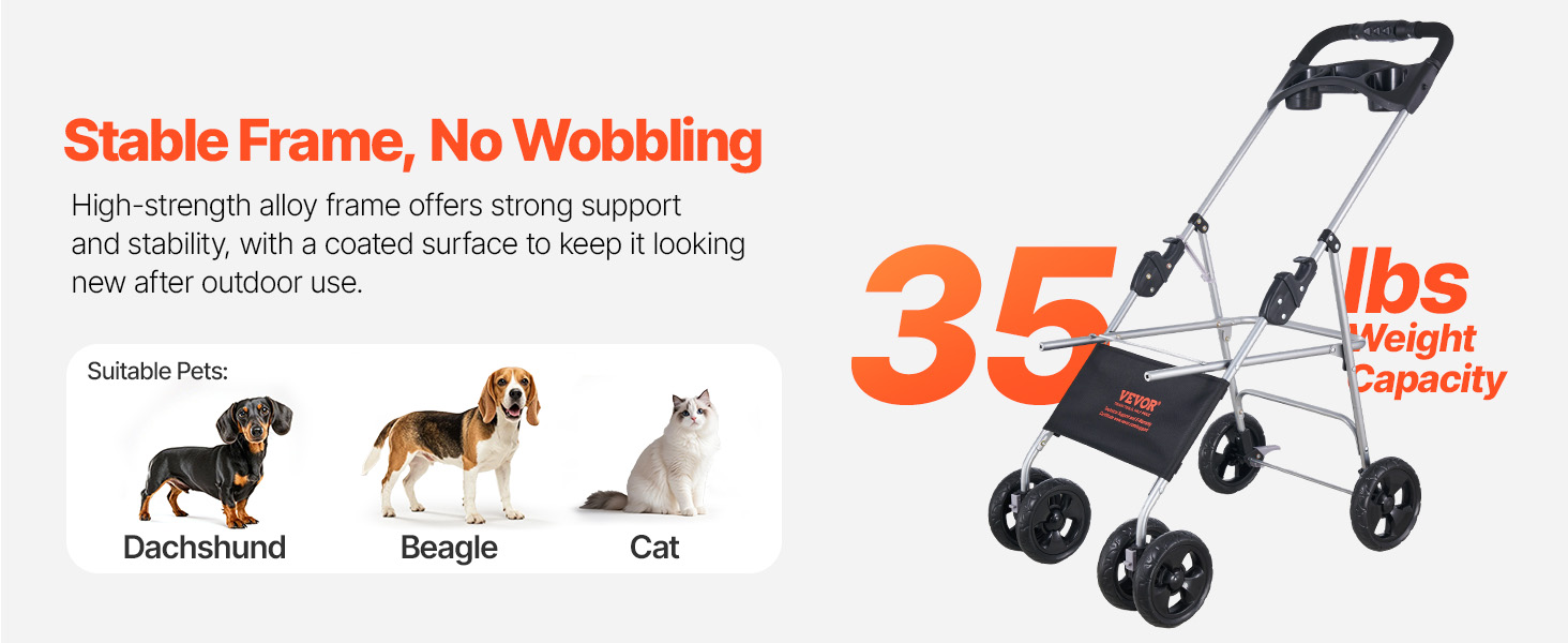 - Robust and Long-Lasting Construction:Crafted with a durable alloy frame designed to resist corrosion and ensure reliable stability. Perfect for urban adventures or outdoor excursions, this pet stroller maintains its sturdiness and balance throughout your journey.