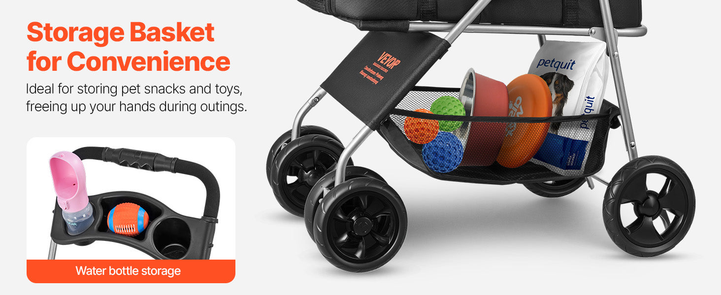 - Carefully Crafted Features: Durable zippers ensure your pets stay secure, a built-in cup holder keeps beverages within reach, and the ergonomic handle allows for easy and comfortable maneuvering.