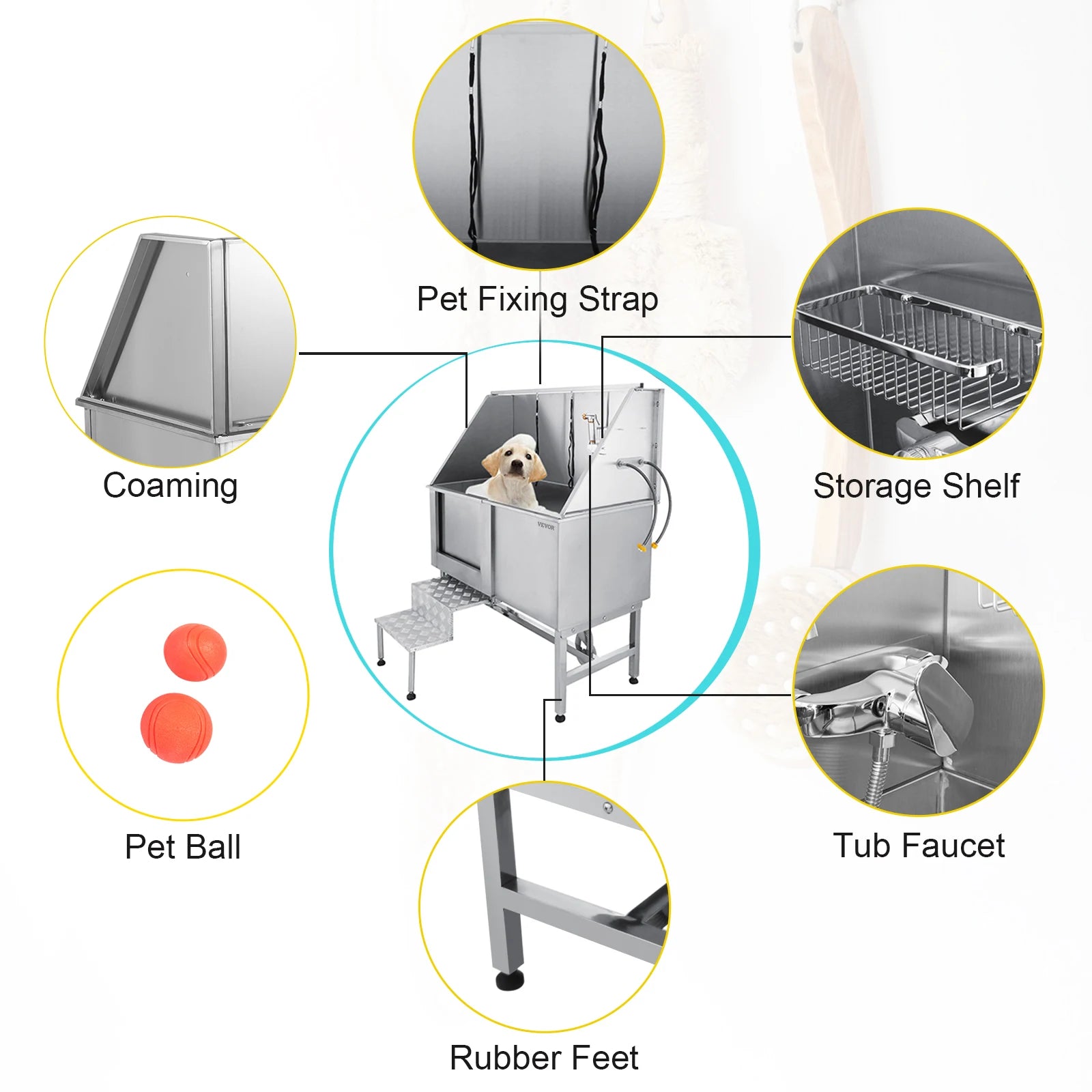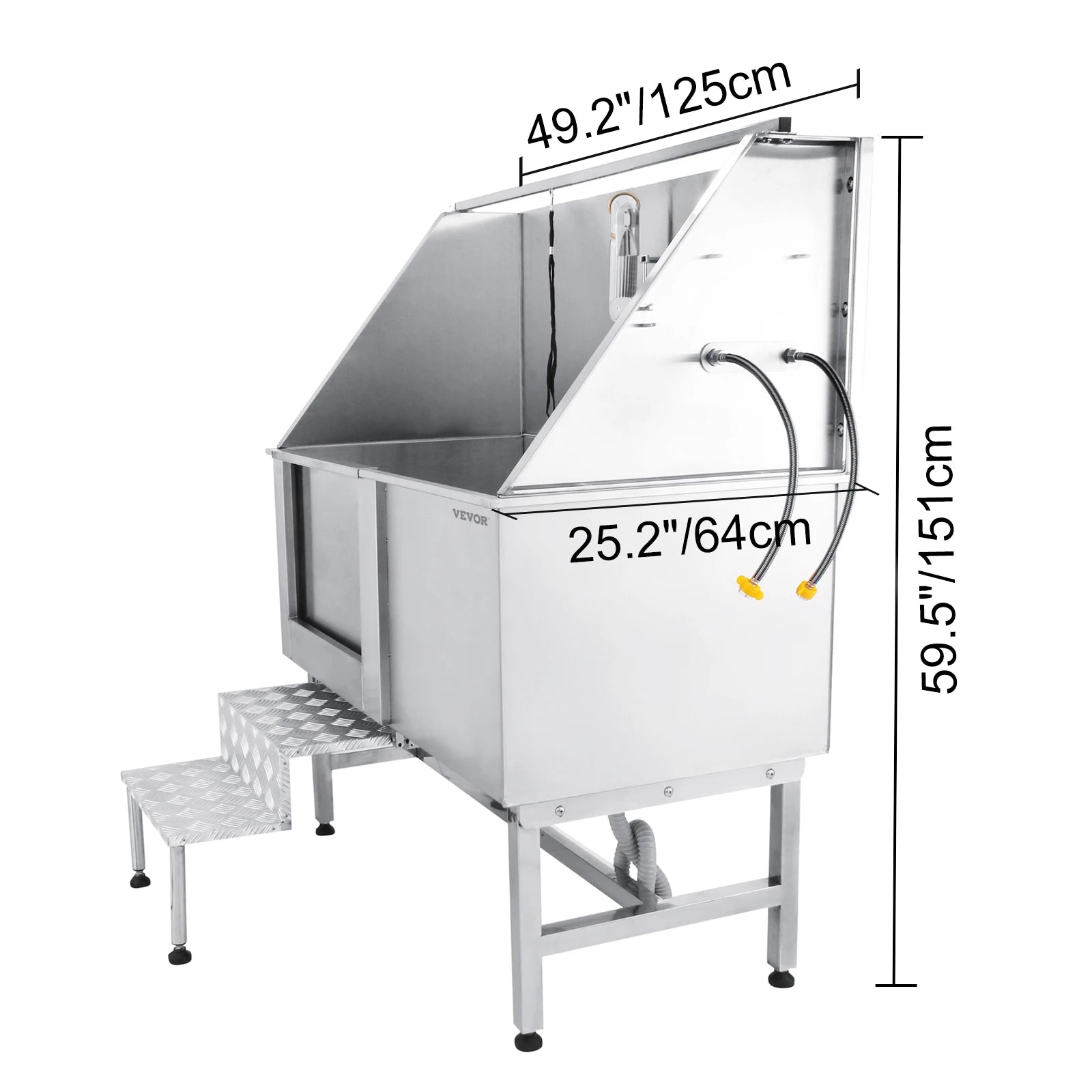 VEVOR 50 Inch Dog Grooming Tub Professional Stainless Steel Pet Dog Bath Tub With Steps Faucet & Accessories Dog Washing Station