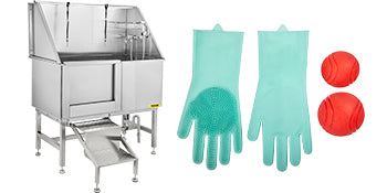 Movable Door & Ramp: Fully welded one-piece dog washing station features outstanding sealing performance to be water leakage-proof. The tub is equipped with a sliding left door with a secure lock to keep your pet inside the bath; a space-saving ramp can be folded and hidden when not in use, the non-skid grooved surface on the ramp helps your pet walk in out securely. The rubber feet are also non-skid and have no damage to the floor.