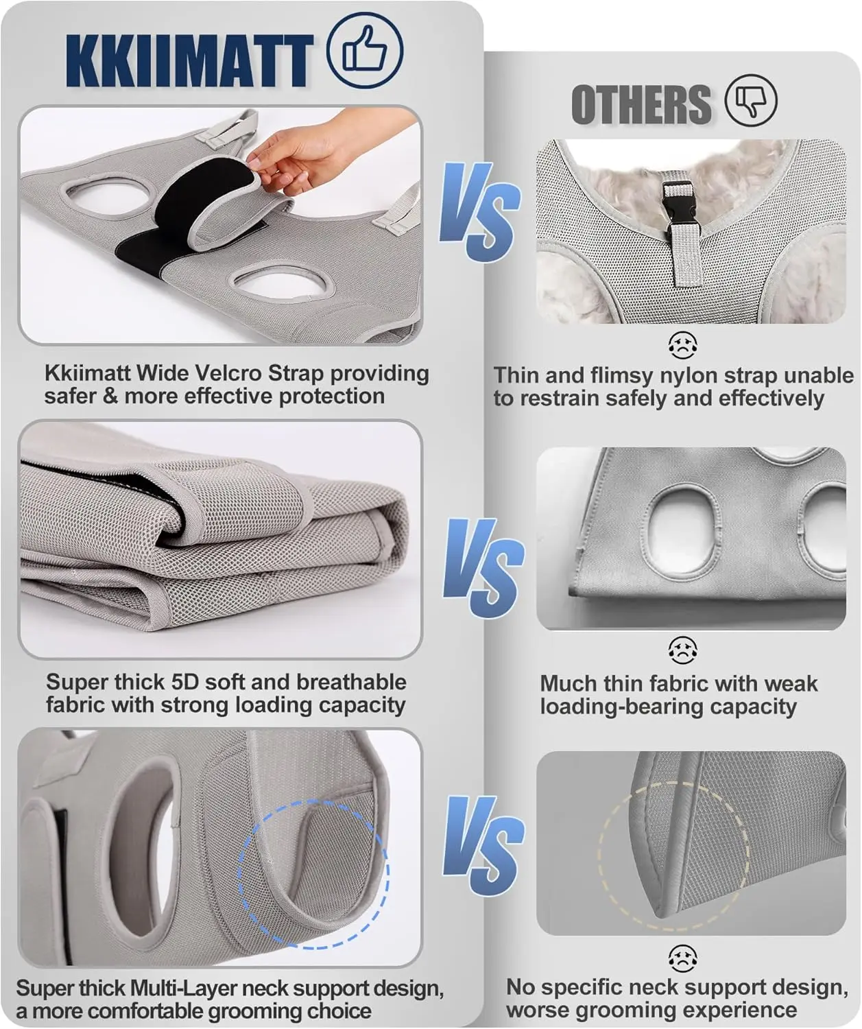 This X-Large Dog Grooming Hammock is designed to make pet grooming safer and more comfortable for both you and your furry friend. It features a thick neck support that provides stability and reduces stress during nail trimming, bathing, or other grooming tasks. The hanging harness allows for easy suspension, keeping your dog secure while freeing your hands. Made from durable materials in a neutral gray color, it's suitable for large breeds and ensures long-lasting use. Key benefits include: 1. Enhanced Safety: The sturdy construction and secure harness minimize movement, preventing accidents during grooming sessions. 2. Comfortable Design: The padded neck support distributes pressure evenly, making it gentle on your pet's skin and reducing anxiety. 3. Versatile Use: Ideal for nail trimming, fur brushing, ear cleaning, and other grooming activities at home or in professional settings. 4. Easy Setup: Simple to hang from doors or hooks with adjustable straps for a customized fit based on your dog's size and needs. 5. Durable Material: Crafted from high-quality fabric that resists wear and tear, ensuring reliability over time without compromising comfort.