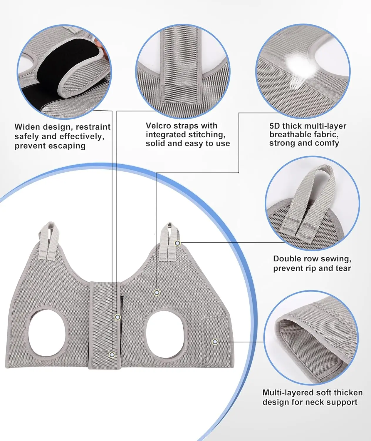 X-Large Dog Grooming Hammock with Thick Neck Support for Nail Trimming, Gray Pet Restraint Holder